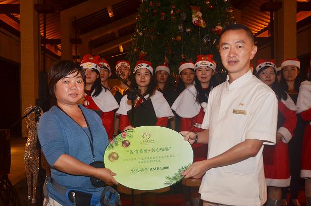 12月12日晚上,海棠湾9号温泉度假酒店邀请河西区的六名贫困儿童参加酒店“温情圣诞真心唤醒”的圣诞点灯仪式。在活动中,酒店向六名贫困儿童捐赠书包、彩笔、童话书等文具用品;并向河西区鸭仔塘社区一名患有患尿毒症的学生捐赠4000元。