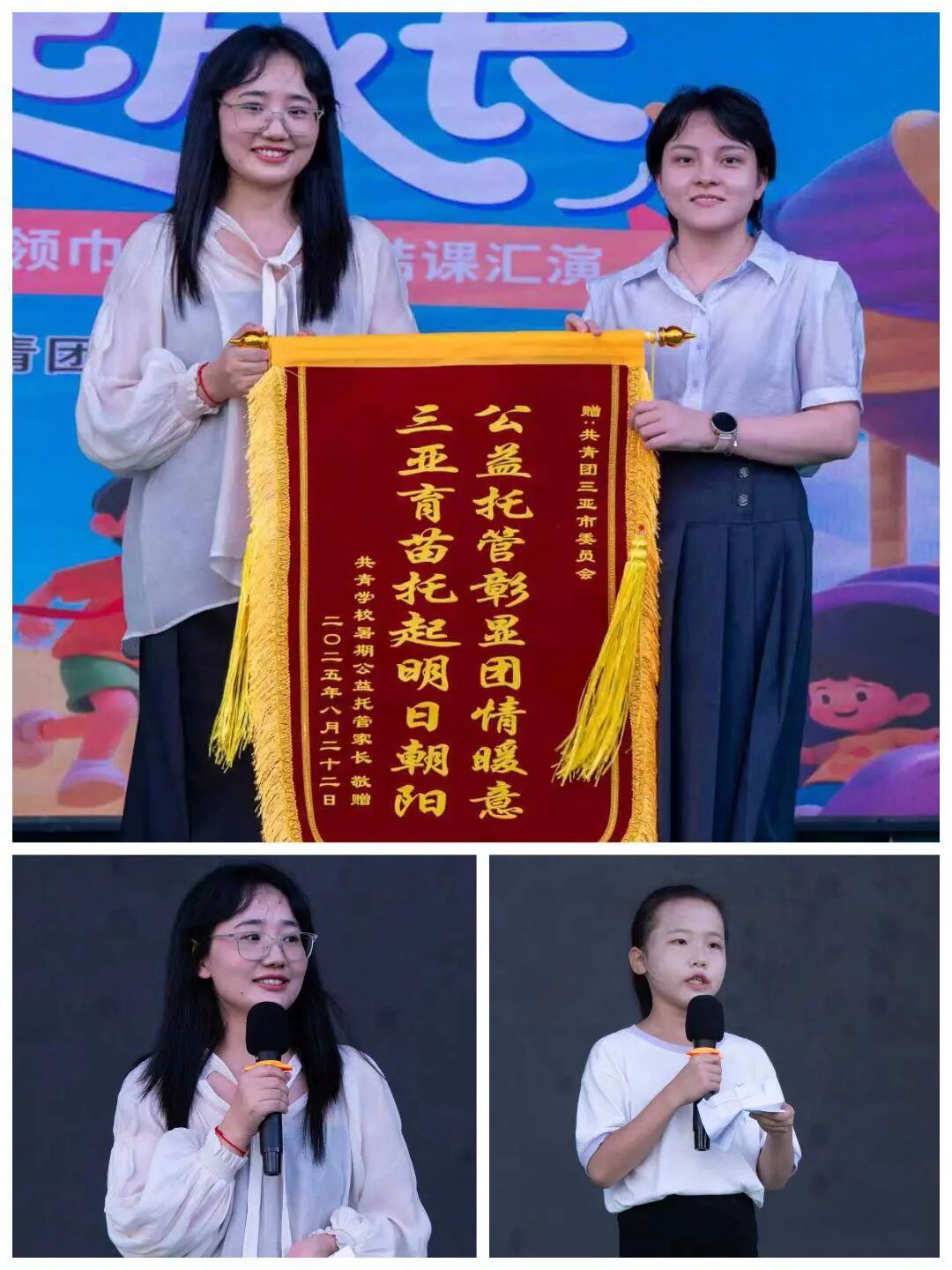 随后,家长代表将一面鲜红的锦旗赠予共青团三亚市委员会,寓意着对工作的认可与鼓励。这一刻,爱与责任在掌声中交织,为整场活动注入了深厚的情感基调。