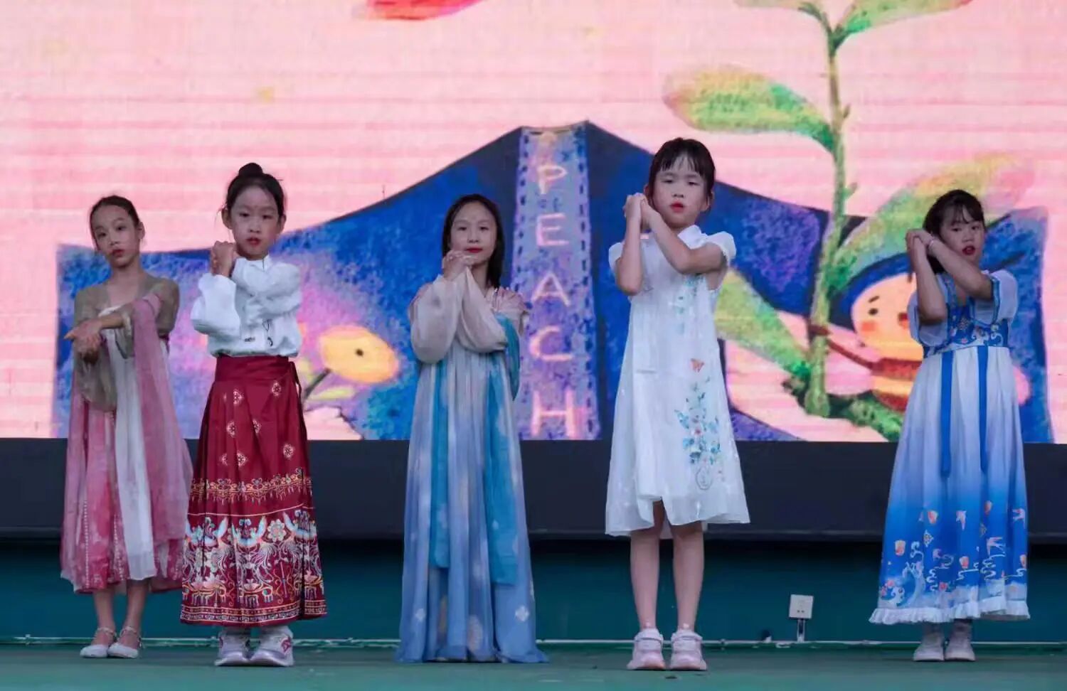 其他班级的舞蹈、朗诵同样精彩纷呈,孩子们用自信和热情诠释了“童心飞扬”的真正含义。