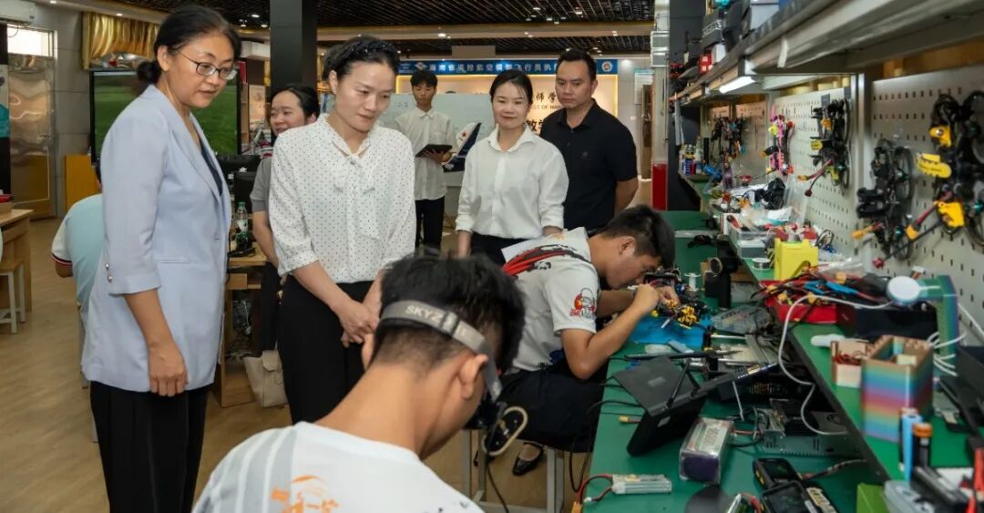 团市委调研组一行先后实地参观了黎族文化与技艺传承基地、彩雕文化创作中心、无人机实训室、播音主持社团活动现场及中国鼓社训练现场等。详细了解三亚技师学院在传统文化传承、特色专业实训建设及学生社团活动开展等方面情况,对技能培养、文化传承与共青团活动深度融合的做法给予肯定。