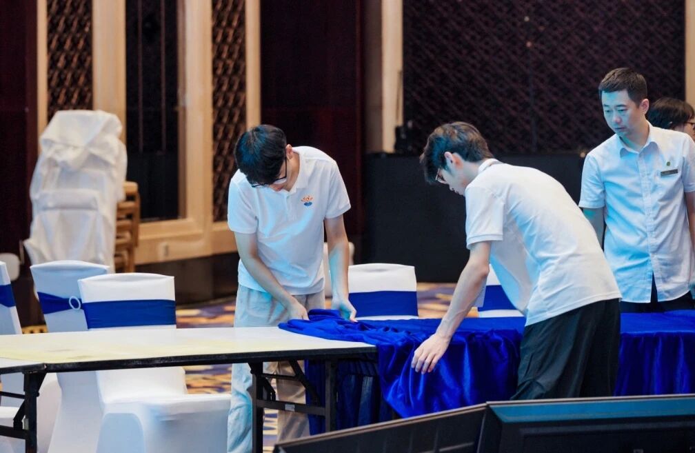 ▲“小椰青”在会场布置桌椅