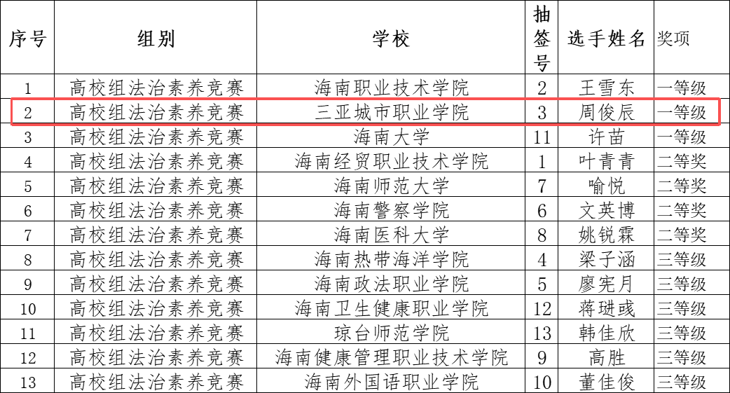 此次获奖,既是对学生个人努力的高度肯定,也是学校法治教育成果的生动展现。长期以来,三亚城市职业学院高度重视法治教育,将其作为落实“立德树人”根本任务的关键环节,把宪法学习深度融入日常教学,通过主题班会、专题讲座等多元形式,营造浓厚的“学法、懂法、守法、用法”校园文化氛围。