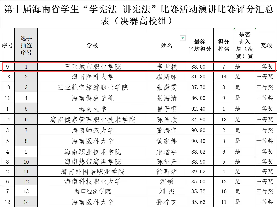 10月18日,由海南省教育厅主办、海南职业技术学院承办的第十届全国学生“学宪法 讲宪法”活动海南赛区总决赛圆满收官。三亚城市职业学院学子凭借扎实的法治素养和出色的现场表现脱颖而出,载誉而归。