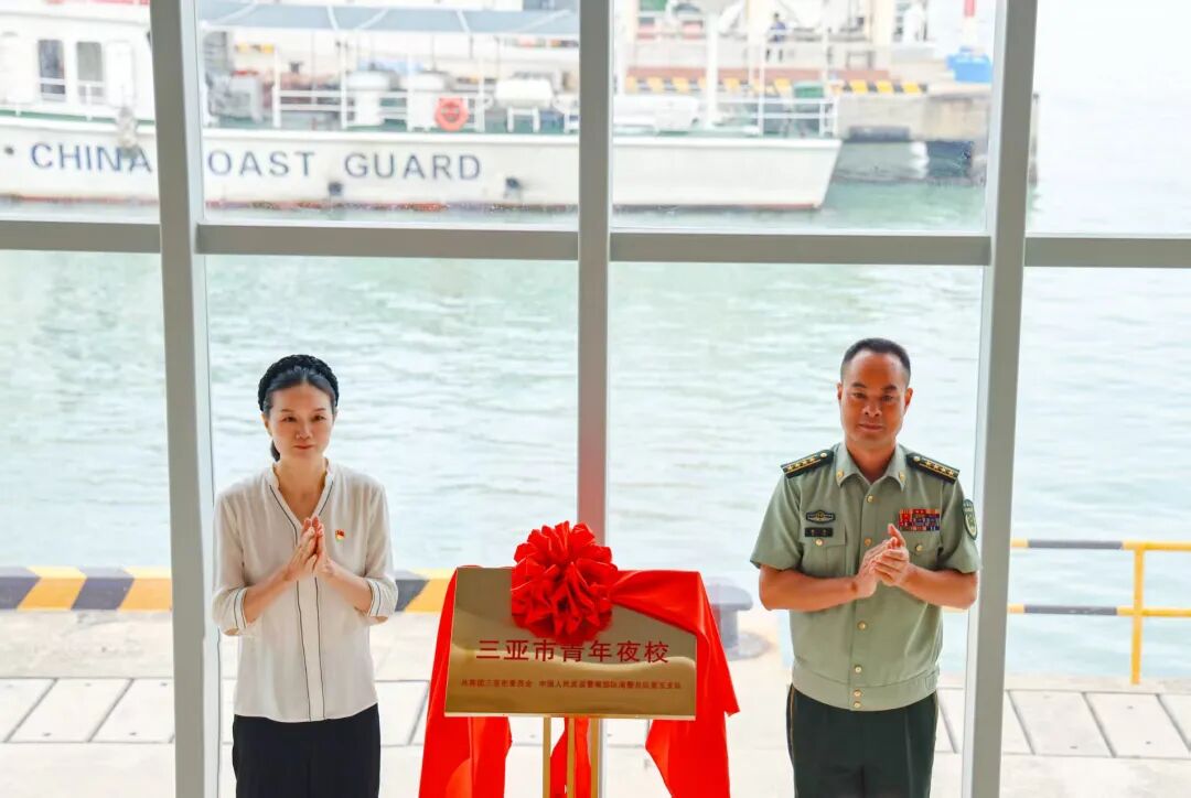△中国海警局直属第五局局长胡伟和共青团三亚市委员会书记张晨共同为青年夜校揭牌