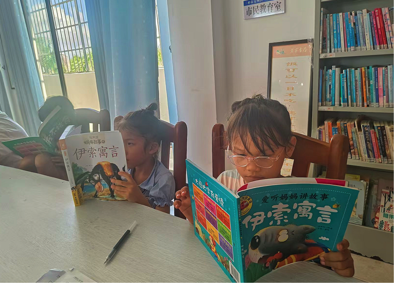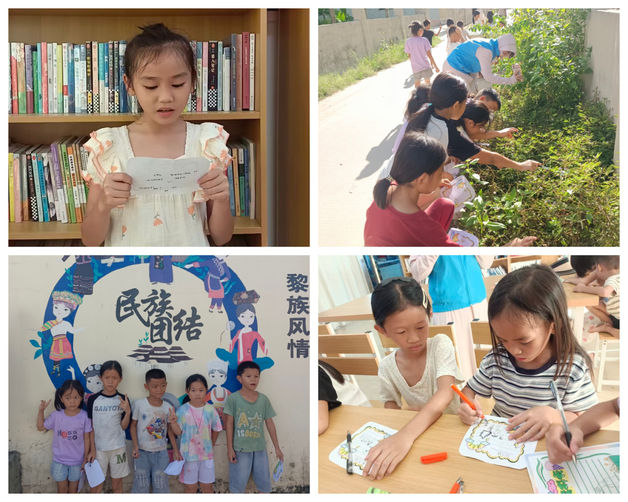 活动开场,社工以“故事的种子”主题介绍,并播放含蝉鸣、风声的乡村白噪音,快速将青少年带入乡土情境。随后开展“行走的阅读课”,青少年手持阅读卡走出文化室,户外探索周边,观察自然景物与乡村建筑,结合书籍内容完成阅读卡思考题,联结书本知识与现实。返回室内后,青少年通过绘画或写作创作家乡故事,展现家乡美景与童真文字,流露对家乡的深厚情感。最后,社工肯定每个故事的独特性,鼓励大家保持阅读与记录的习惯。