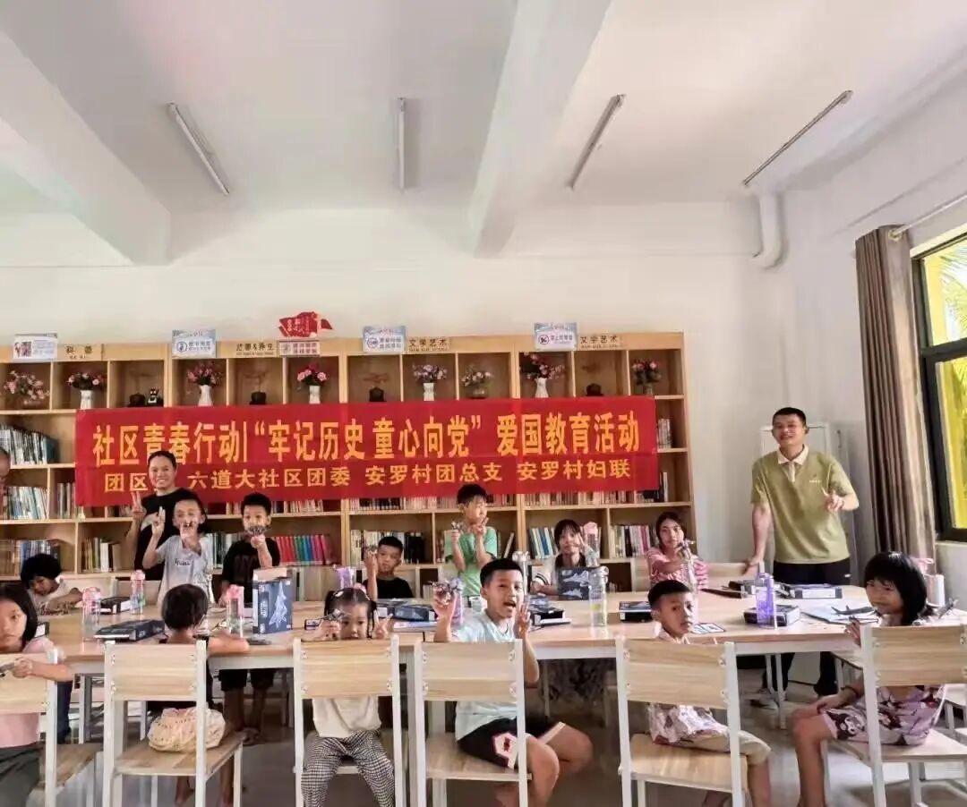 共青团三亚市吉阳区委员会在安罗村委会开展社区青春行动——“牢记历史 童心向党”爱国教育活动。