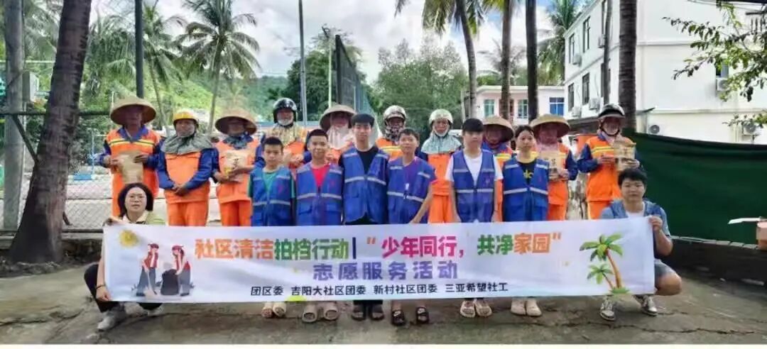 共青团三亚市吉阳区委员会与三亚希望社工联合开展社区清洁拍档行动——“少年同行,共净家园”志愿服务活动。