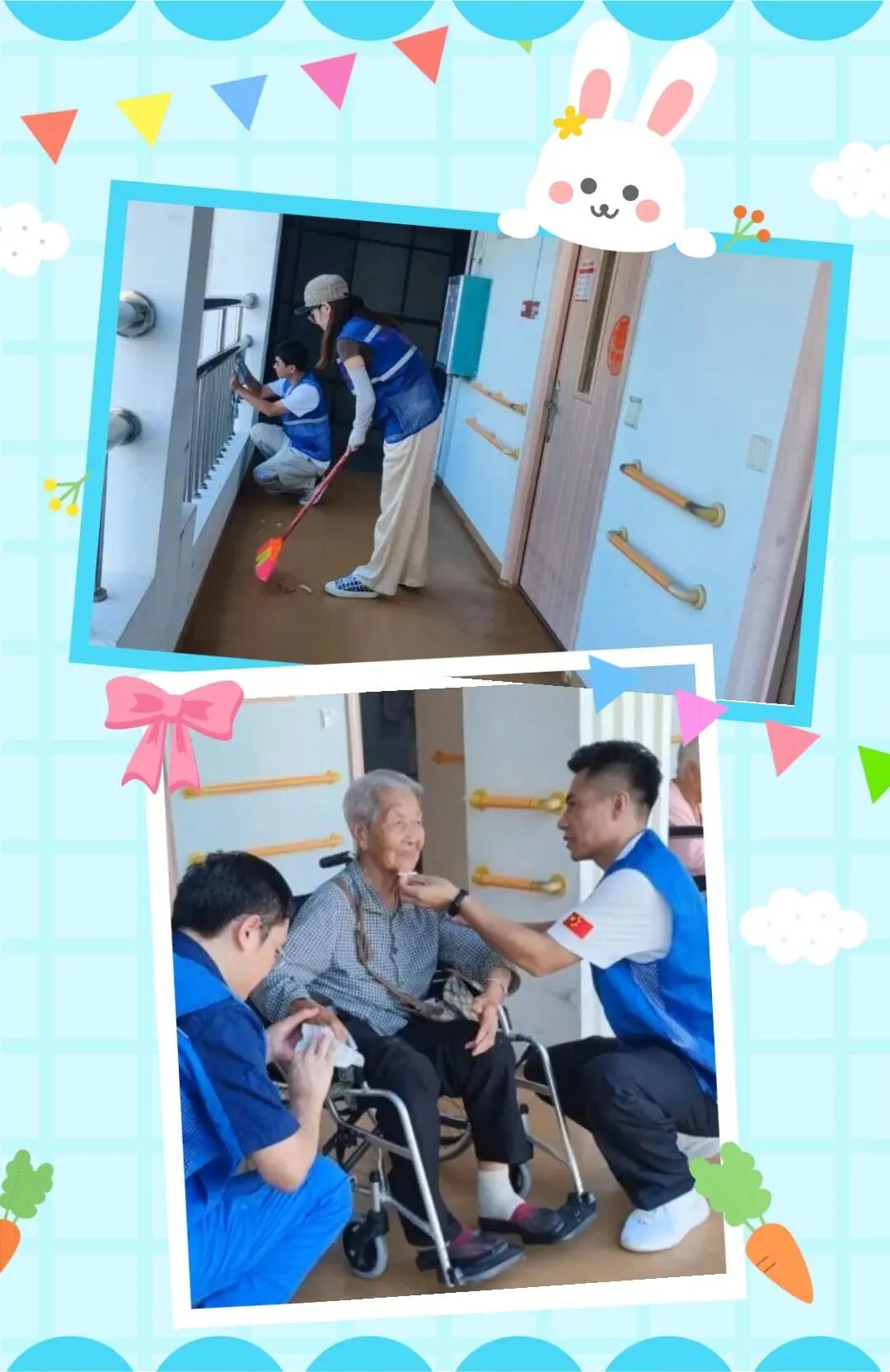 活动中,青年志愿者们为老人们打扫庭院、房屋和走廊等区域卫生,为老人们营造整洁舒适的生活环境。